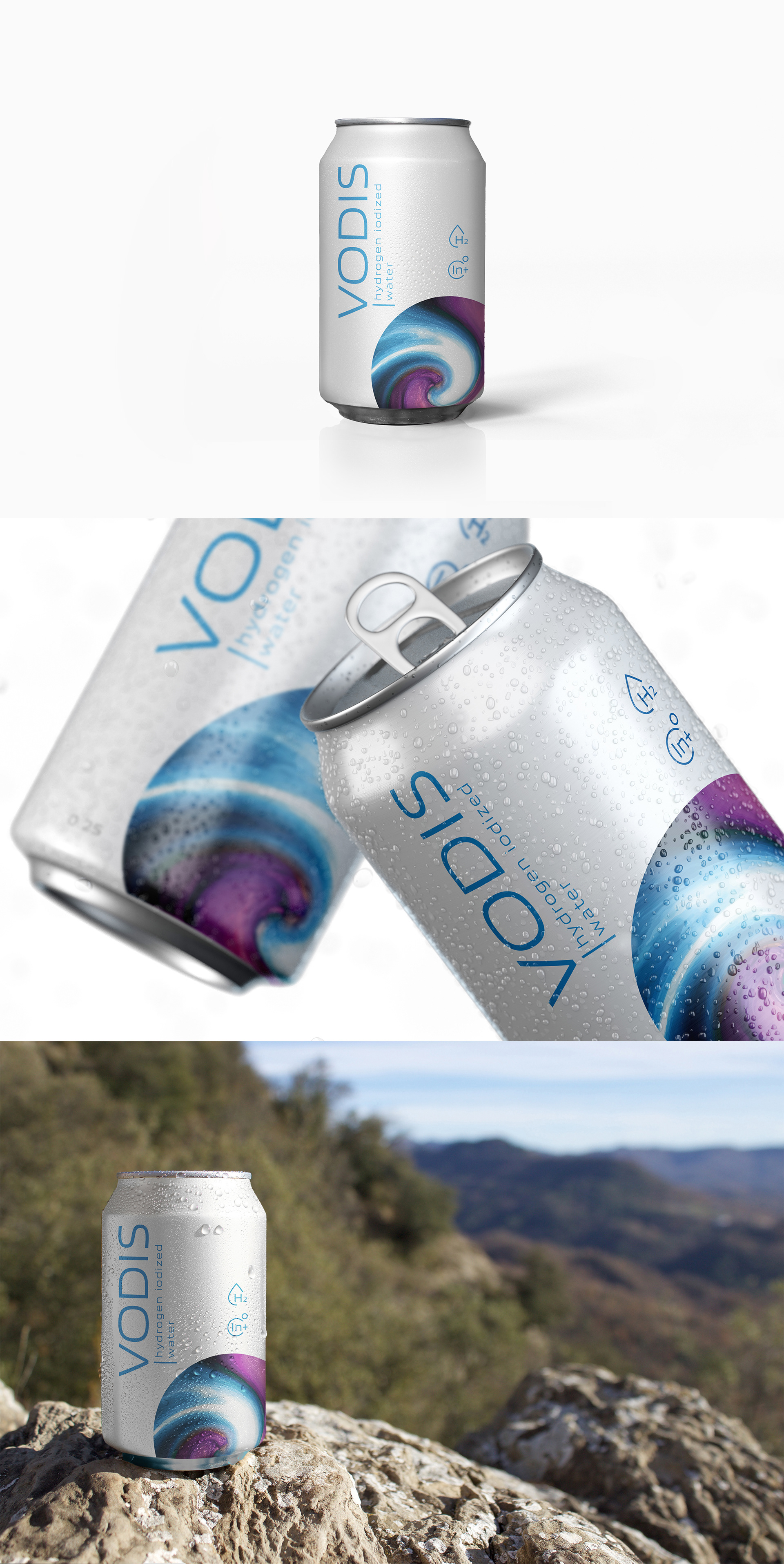 Beverage can design for "Vodis" hydrogen iodized water