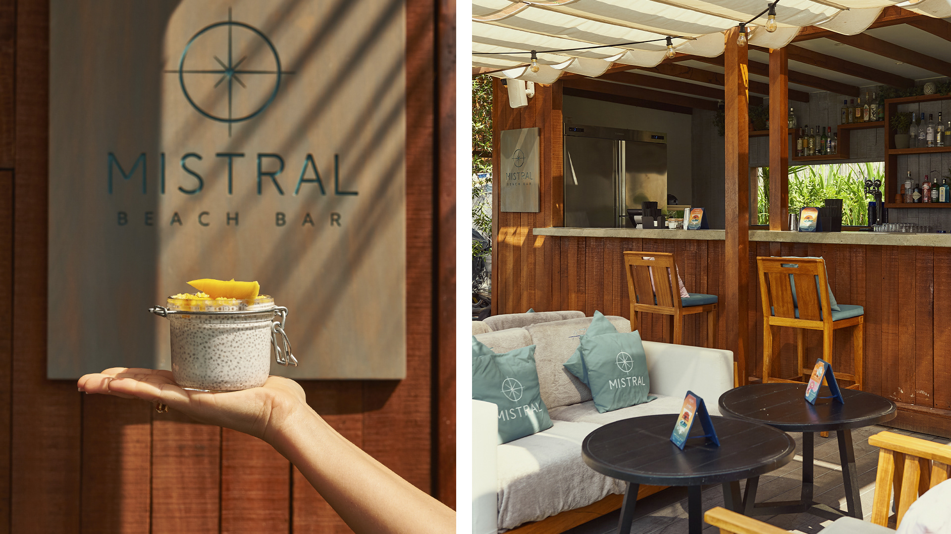 "Mistral" is a new beach bar located in Dubai, UAE. The design approach was inspired by the gulf surroundings and reflects the experience you get while relaxing on the beach. The logo consists of "Mistral" name and a wind rose. It is a graphic tool that showing wind speed and direction. So this bar can guide you to the harbour of a real leasure as mistral helped sailmen to find a right direction.